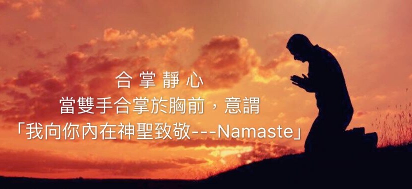 《合 掌 靜 心》當雙手合掌於胸前,意謂「我向你內在神聖致敬—Namaste」。